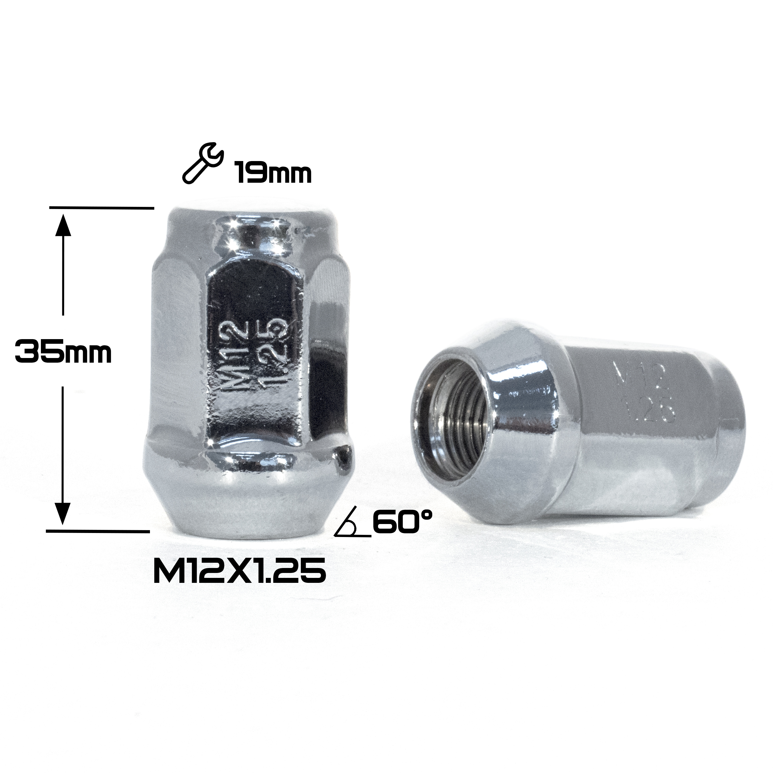 ГАЙКА КОНУС CHROME М12*1,25 (L35 NEX 19)